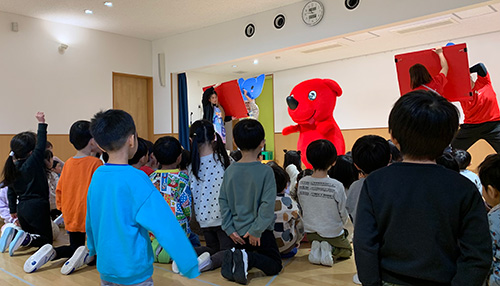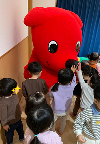 ホーム2026年1月チーバくんが遊びに来てくれました! チーバくんが遊びに来てくれました! 保育園にチーバくんが遊びに来てくれました。前日から、朝から、ワクワクそわそわな子どもたち。チーバくんに会えて大喜びでした!一緒にダンスやゲームをしたり、クイズを通して楽しく千葉県について知ることができました。